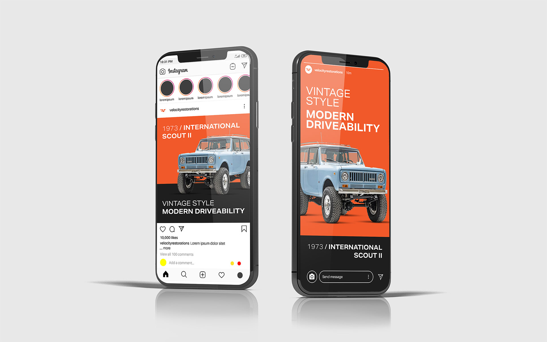 This design showcases how Velocity Restorations’ iconic vehicles can captivate audiences across digital platforms. Using a blue 1973 International Scout II, I created a cohesive campaign in both square (1080x1080) and vertical (1080x1920) formats. The designs are optimized for Instagram's feed and Stories.